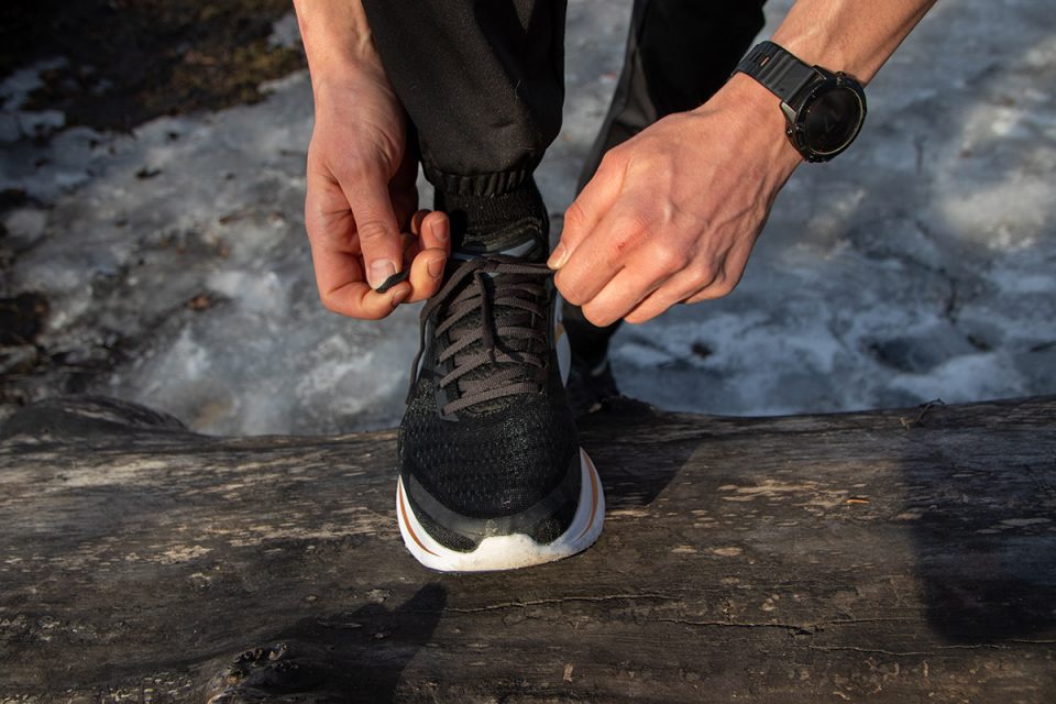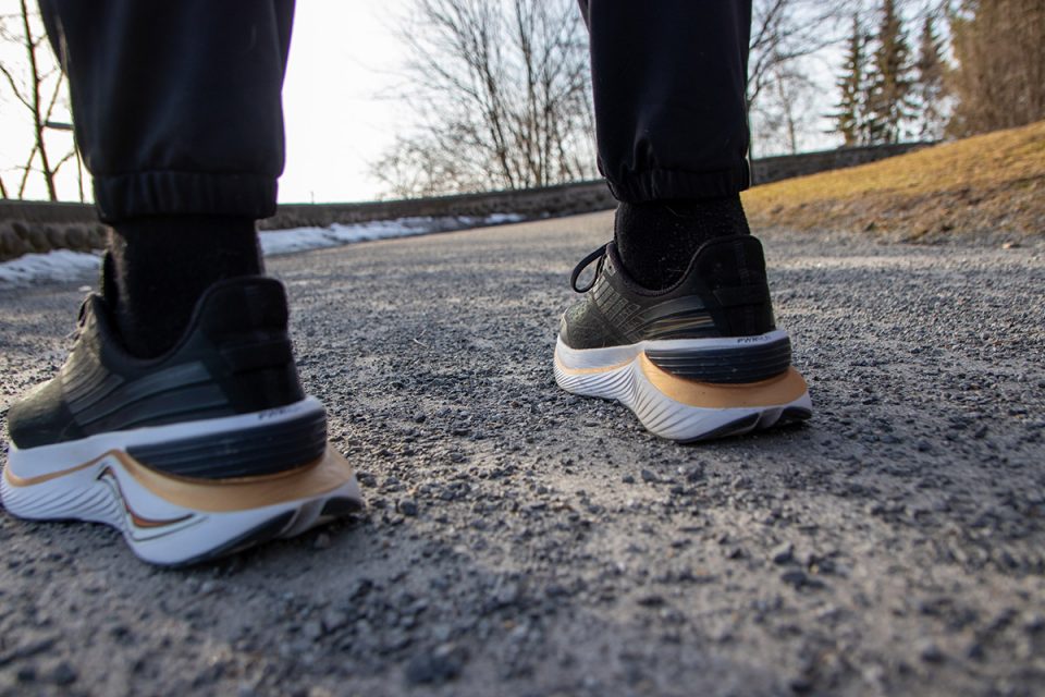 Ensiaskelilla tunsin jo, miten hyvin kenkä rullaa ja kannan vaimennus tuntuu melkein pompauttavan eteenpäin. Kengän päällinen on mukavan hengittävä ja sukkamaisen tuntuinen. Malli istuu itselleni tukevasti jalkaan ilman, että nauhoja tarvitsee kiristää hirveän tiukalle, tuoden huomattavasti lisää mukavuutta pidemmille lenkeille.