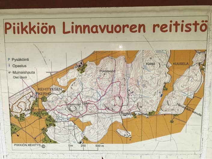 Piikkiön Linnavuori tarjoaa reilun neljän kilometrin luontopolun. Matkalla kannattaa poiketa Huttalan linnavuorella ja sekä Piikkiön korkeimalla huipulla, Pohtion vuorella (79m). Lopuksi kannattaa vielä käydä testaamassa uudet pururadan varrella sijaitsevat kuntoiluportaat, jotka nousevat 110-tien tuntumasta. Toki melko lyhyet portaat olivat, mutta sykkeen saa varmasti nousemaan.