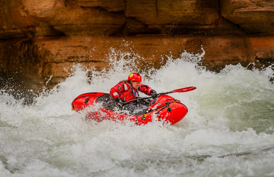 Tilannekuva koskimelonnasta Grand Canyonissa. Aaltojen roiskeiden pysäyttämiseen tarvitaan nopea suljinaika. 200 mm F2.8 1/640s ISO 100.