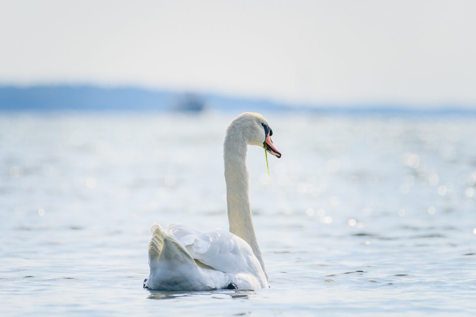 Kyhmyjoutsen merenrannalla. 500 mm F8 1/1250s ISO 100.