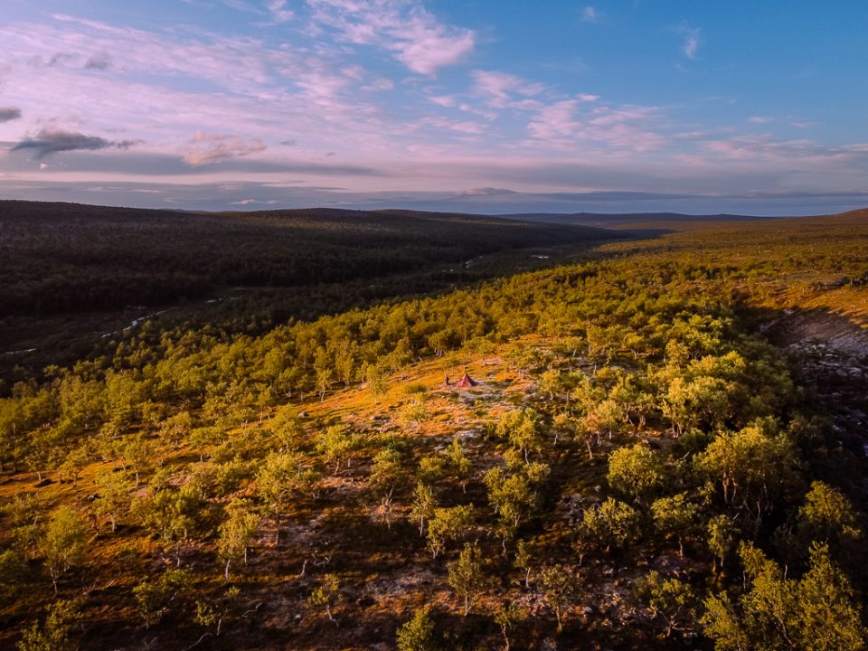Droonikuva erämaassa antaa hyvän kuvan telttapaikasta.