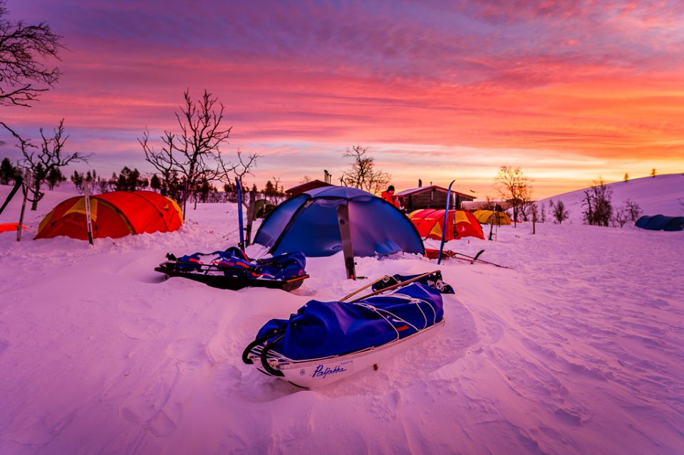 Vaelluksilla kuvaaminen onkin sitten jo se kuninkuuslaji. Kun selässä on painava rinkka, istut packraftissa koskessa meloen, vedät ahkiota upottavassa lumessa tai keli on sateinen ja tuulinen, niin helposti jää kuvat ottamatta. Tässä auttaa se, että on kova into kuvata ja todella tykkää harrastuksesta.