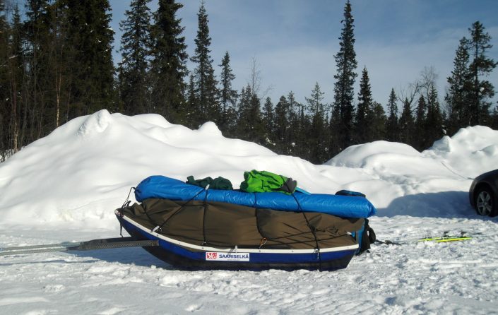 Aiemmin olen käyttänyt ahkiona Savotan Paljakka mallia, mutta viime reissuilla pulkka on vaihtunut Hitin valmistamiin ahkioihin.