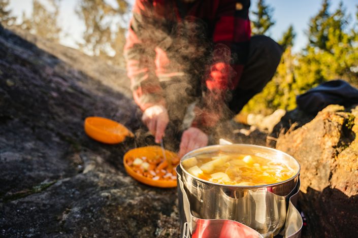 Mikäli itseltä löytyy jokin retkikeitin, on ruokaakin helppoa tehdä ulkona. Keitot ja patatyyliset ruoat valmistuvat melko pienellä vaivalla. Kaasukeitin on varmasti varmin valinta ensimmäiseksi keittimeksi. Kaasukeitin on helppo käyttää ja se on tehokas. Mukaan kannattaa pakata myös retkiastiat.