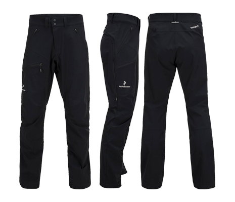 “Kevyet ja hyvin istuvat softshellit monipuoliseen ulkoiluun ja retkeilyyn. Black Light -sarja on kauttaalta on ollut yksi Peakin menestystarinoista ja nämä housut seuraavat samaa linjaa. Pitkät tuuletusaukot sivuilla ja housujen keveys yhdistettynä tyylikkääseen istuvuuteen tekevät näistä mahtavat kaverit aina hiihtoladuilta golfkentille. Näitä on myyty todella kivasti, mutta vielä löytyy!”, Juho vinkkaa.
