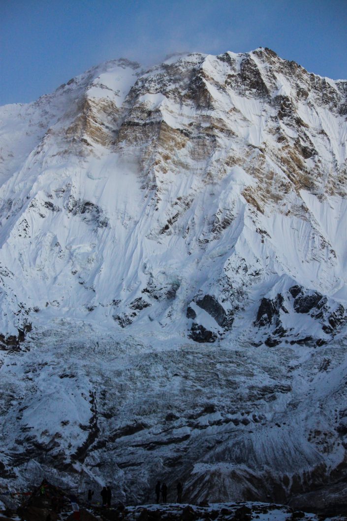 Annapurna South (7219m) ja Hiunchili (6441m). Kuvan oikeassa laidassa kaukaisuudessa häämöttää Annapurna III.