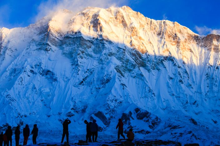 Saapuminen perille Annapurnan perusleiriin, joka ympäristöineen tunnetaan myös nimellä Annapurna Sanctuary, on upea kokemus. Yksi ainoa polku vie kulkijat ympyrän muotoisen laakson syliin ja joka puolella ympärillä kohoavat yli 6000 metriin nousevat vuorenhuiput. Majesteettisin niistä on itse Annapurna I, jonka neljä kilometriä korkea eteläseinämä nousee jyrkkänä yli 8 kilometrin korkeuteen. Perusleirissä kannattaa myös viettää yö, koska aamun kullanhohtoisten ensisäteiden osuminen korkeimmille huipuille maiseman vähitellen valjetessa, on hieno elämys.