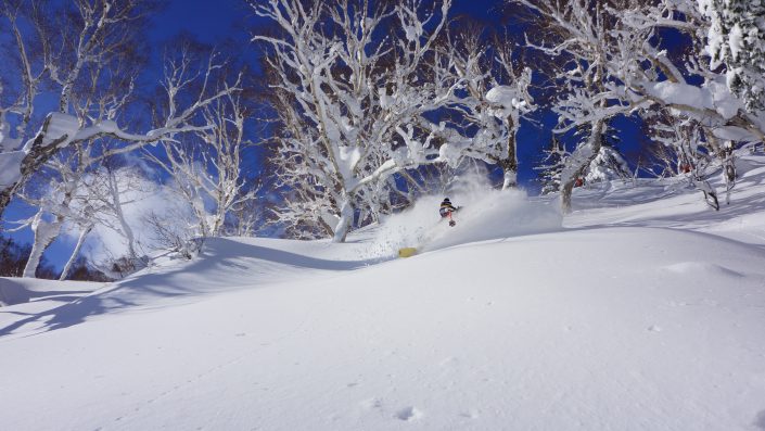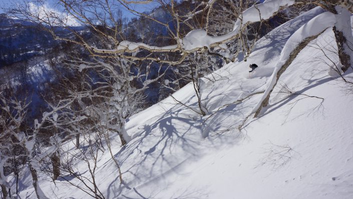 – Japanista löytyy upeaa hissihiihtoa, joten ihan ensimmäiseksi ei kannata sännätä randolle, vaikka toki myös skinnailumaastot ovat hienoja, kun ollaan ensiksi hiihdelty hissipuuterit alta pois.