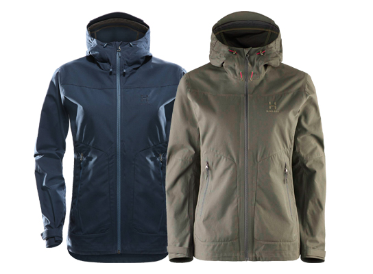 Naisille löytyy samoissa väreissä kivasti istuvia Haglöfs Trail -retkeilytakkeja.