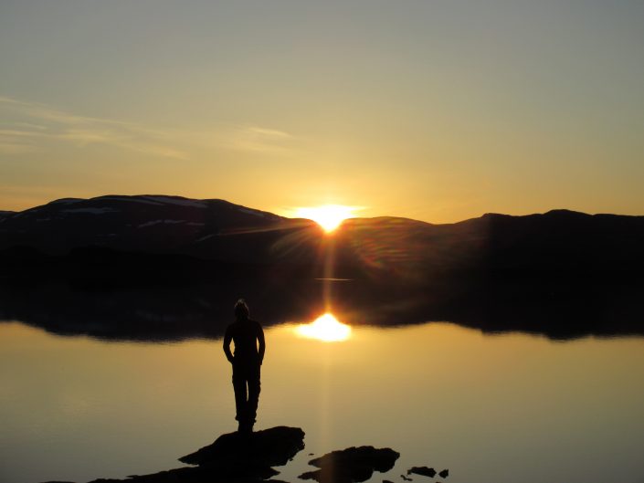 Aurinko on muuttumassa oranssin sävyiseksi ja tuuli voimistuu hieman. Sisältäpäin nousee selittämätöntä merkityksen tunnetta. Tämä on hyvä hetki. Ja kohta on taas aika lähteä alas. Laaksoon on hyvä ehtiä ennen pimeän tuloa. Paljon myöhemmin perillä leirissä ruoka maistuu jälleen erityisen hyvälle ja tanssivat revontulet ovat palanneet näyttämölleen.