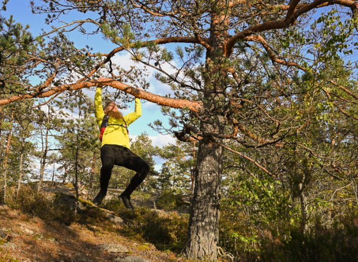 Toisena vuotena pystyin jo juoksemaan vaivatta 10 km polkujouksulenkkejä ja nyt kolmantena vuotena otin harjoitteluun mukaan myös lihaskuntoharjoitukset, joissa vedän leukoja ja punnerruksia luonnossa. Tämän lisäksi teen salilla kunnolliset lihaskuntoliikkeet, mutta luonnossa harjoitellessa saa aina lisää motivaatiota.