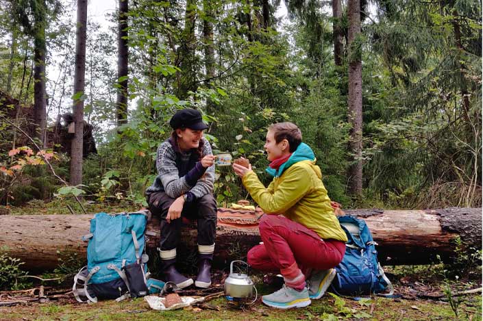 Esiintyjät ovat Luontohaaste- nimisen retkeilyblogin ja yrityksen parissa toimivat eräoppaat Ella ja Kaisa. Heillä on monipuolinen retkeilytausta ja retkillä yhdeksi tärkeimmäksi asiaksi nouseekin usein hyvä ja herkullinen retkiruoka. Sosiaalisen median, luentojen ja kurssien kautta he jakavat tietoa retkeilyn ja ulkoilun mahdollisuuksista myös muille. Lisää Luontohaasteen toiminnasta löydät osoitteesta www.luontohaaste.fi tai Instagramista nimimerkillä @luontohaaste.