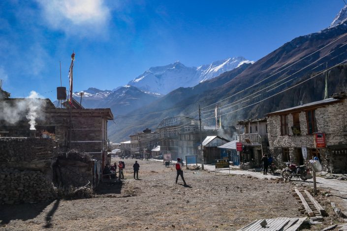 Itse kuljin ylemmän polun vuonna 2015 Annapurnaa kiertäessäni, joten nyt päätämme yhteistuumin suunnata Manangiin helpompaa reittiä pitkin. Valitsemme siis suunnaksi laakson pohjan tasaisemman reitin. Managissa on tarkoitus viettää yksi välipäivä, ei niinkään enää korkeuteen sopeutumisen takia, vaan pikemminkin vain antaaksemme kehoillemme hieman aikaa levätä. Siitä seuraavina päivinä on luvassa taas runsaasti jyrkkää ylämäkeä.