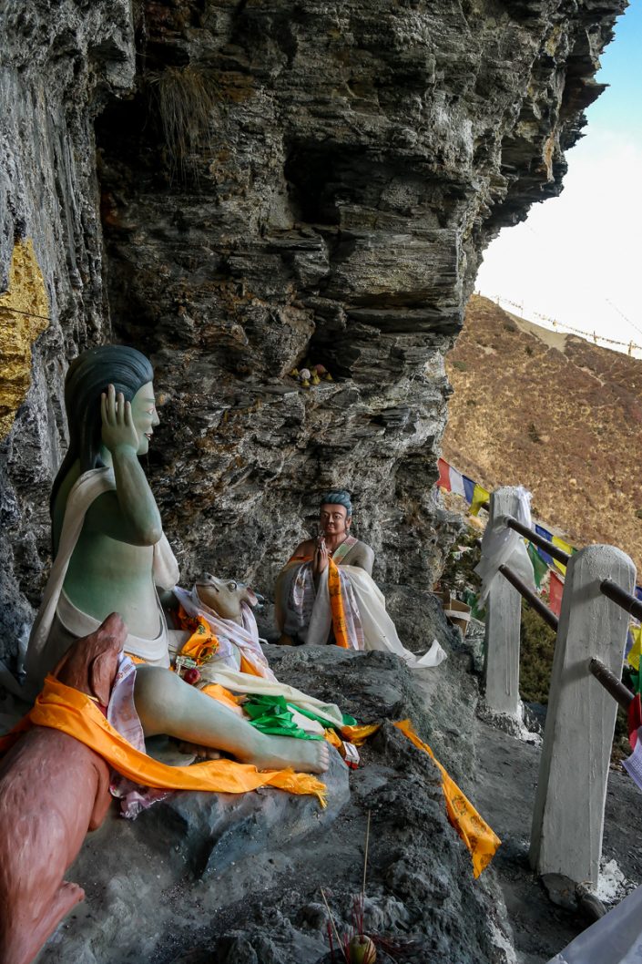 Matka luolalle kestää noin 3 tuntia ja nousija palkitaan avarilla maisemilla Manangin laaksoon ja kauas ympäröiville vuorille. Reitti on koko matkan helppoa seurattavaa ja perillä kulkijaa odottaa aluksi pieni pyhäkkö ja vähän ylempänä itse mystistä joogi Milarepaa sekä metsästäjä Kera Gompa Dorjeeta esittävät patsaat. Varsinainen luola on romahtanut, eikä sinne ole pääsyä. Syön eväitä, nautin maisemista sekä paikan tunnelmasta. Takaisin Manangiin palaan myöhäiselle lounaalle.