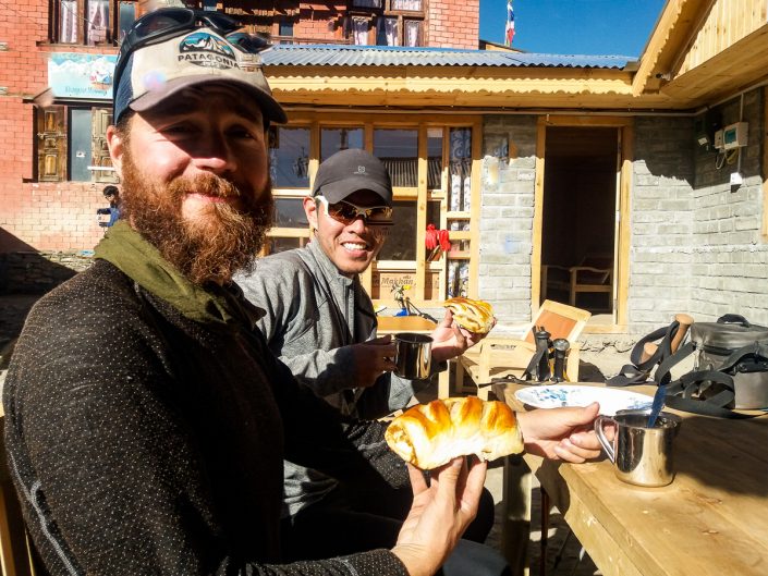 Ennen lähtöä Manangista oli vielä aivan pakko käydä ostamassa omenaviinerit matkaevääksi.