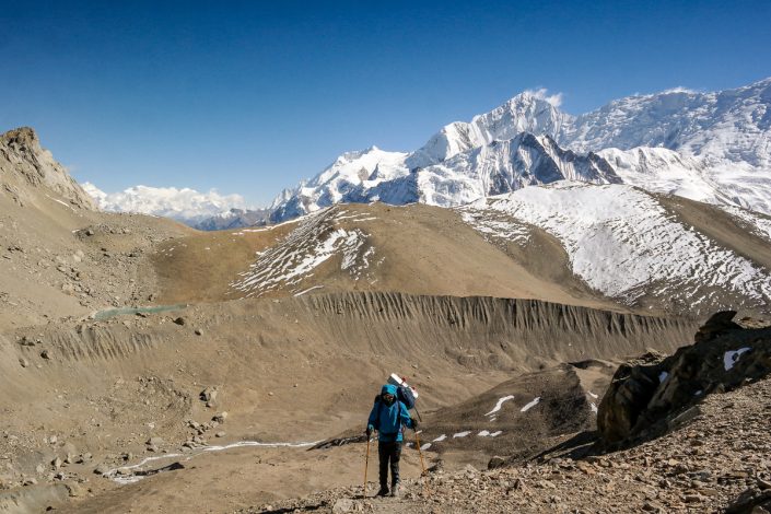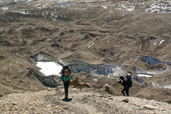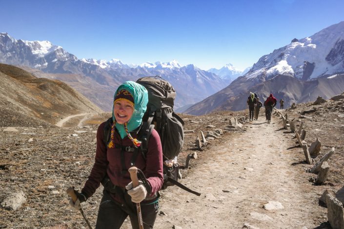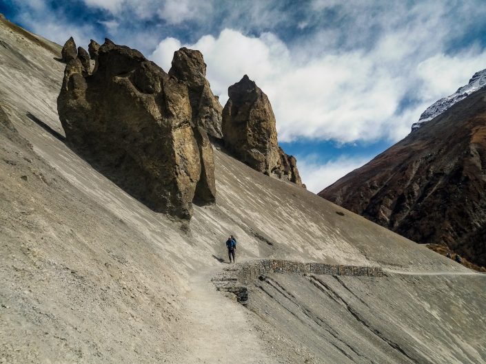 Seuraavana aamuna Manangista lähdön jälkeen polku haarautuu kahteen suuntaan. Toinen tie vie kohti korkeaa Thorung La -solaa, joka on Annapurna Circuitin korkein kohta. Suurin osa vaeltajista suuntaakin kulkunsa sinne. Itse käännymme toiseen suuntaan, eli kohti yli kilometrin korkeammalla sijaitsevaa suurta Tilicho -jäätikköjärveä.