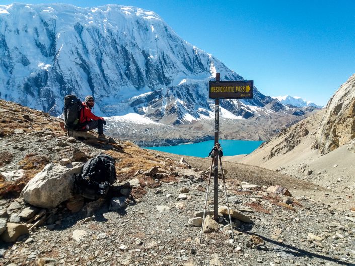 Järveltä solalle vie hyvin selkeä harjannetta pitkin kulkeva polku. Sää on taas mitä parhain. Tilichon turkoosi vesi kimaltelee auringossa ja vuoret hohtavat kauniin valkoisina. Vähitellen näkyviin tulevat ylhäällä liehuvat rukousliput, jotka merkkaavat solan sijainnin. Vielä viimeinen jyrkkä ylämäki ja olemme perillä.