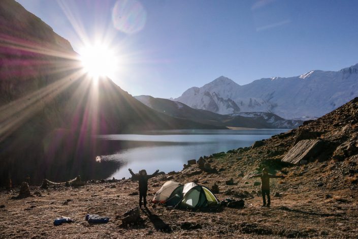 Yö sujuu rauhassa ja saamme nukuttua hyvin. Aamupalan jälkeen käymme pikaisella aamu-uinnilla, jonka jälkeen suuntaamme kulkumme taas ylös kohti solaa. Näemme ylemmillä rinteillä muutaman kantajan. Ilmeisesti järven rannalla oli yöpymässä jossain edempänä myös toinen trekkiporukka, joka nyt lähtee vastakkaiseen suuntaan.