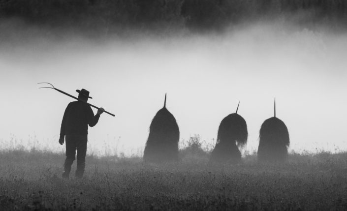 “Taitavasti usvaa ja mustavalkoisuutta hyödyntämällä pelkistetty kuva, jossa on hiljaista huumoria. Heinähangon ja seipäiden piikit rinnastuvat hauskasti ja heinämiehen ryhdissä ja olemuksessa on myös jotain samaa kuin heinäkasoissa. Kuvassa ei ole mitään ylimääräistä ja kaikki on kohdallaan. Mustavalkoisuus korostaa loistavaa sommittelua.”