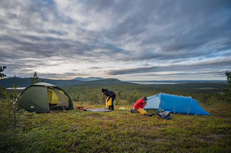 Jos jaat teltan toisen kanssa, pystyt usein säästämään hyvin painossa. Hyvä tavoite olisi saada teltan paino putoamaan alle 1000g/nukkuja. Sooloteltoista tämä on vaikeaa, ilman että teltta menee todella pieneksi, mutta kahden hengen ja sitä isommissa se onkin jo paljon helpompaa.