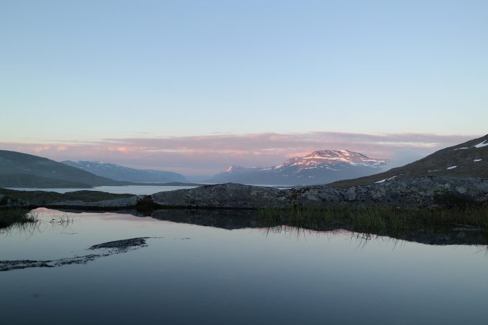 Ihminen, joka ei ole käynyt tunturimaisemissa saa liitteenä olevista kuvista osviittaa siitä kuinka avaraa ja hiljaista siellä on. Ihminen, joka on nähnyt sitä, ikävöi paikkaa luultavasti. Suurin osa vaeltavista oli ollut alueella jo aikaisemmin. Mitä pohjoisemmaksi liikuin reittiä pitkin, sitä pidempään ihmiset olivat liikenteessä. En todellakaan ollut „kovin“ vaeltaja siellä. Seuraava anekdootti osittaa tämän hyvin. Olin vaeltanut noin 200km Kungledeniä ja saman verran Padjelantaa. Lisäksi huiputin joitakin polun lähellä olevia vaaroja. Olin korkeasti motivoitunut saapuessaan Norjan rajalle. Tyytyväisenä siihen menneeseen suoritukseen ja rutinoituneena laitoin Ken Folletin äänikirjaa soimaan, ja kävelin merkittävästi kevyemmällä rinkalla Norjaan. Sää oli mitä parhain ja Padjelantan kaunis etappi lisäsi odotuksia Kalottireitille. Tilanne kääntyi äkkiä kun väsymyksestä rytmi hajosi ja jouduin jatkamaan yöllä. Yöllä maisemat ovat kauniimpia, koska auringon nousu ja lasku aiheuttaa mitä mahtavampia värejä ja heijastuksia. Erityisesti vesi ja lumi saavat uskomattoman sävyn. Haittapuolena ovat iso määrä hyttysiä. Huono rytmi pakotti minua nukkumaan aamulla pidempään, mikä osoittautui vaikeaksi kuumuuden takia. Lisäksi maasto muuttui todella haastavaksi. Korkeuserot yhdistettynä kivikkoiseen maastoon ovat mitä hitaampia ylitettäviä maastoja, ja sitä riitti Norjan Kalottireitillä. Palattuani Ruotsin puolelle noin 200km myöhemmin maasto muuttui helpoksi, hyttyset vähenivät ja rytmistä oli saatu taas kiinni. Olin kuitenkin vielä palautumassa rankasta viikosta. Juuri kun suoritus oli niin sanotusti noussut päähän ja ylpeilin jo mielessäni kuinka kova toveri olen, ystävällinen rouva eläke-iässä tuli minua vastaan, palauttaakseen minua maan tasolle. Juteltuaan hänen kanssa hetken, minulle selvisi hänen suuntaavan sinne mistä juuri tulin. Hän oli vaeltanut jo Kilpisjärveltä Abiskon kautta Norjan rajalle Unna-Allagas hytille, jossa tavattiin. En voinut uskoa miten hyvässä kunnossa niin hento ihminen voi olla. Varoitin häntä raskaasta etapista, jota hänellä oli edessä. Kun luulin kuultuani mahtavimman tarinan hänestä, hän pisti vielä paremmaksi. Varoitukseen hän vastasi vaeltaneensa Kalottireitin jo kokonaisuudessan ja tietävän kuinka haastava kivikko hänen edessä oli. Olin luvannut itselleni välttää kivikkoa loppu elämän, joten kysyin, miksi hän menisi uudestaan sinne, jos hän tietää olosuhteet. Vastauksena tuli: „Minulla on polvet huonossa kunnossa ja kunto ei ole enää paras, joten ajattelin vaeltaa vielä kerran Kalottireitin kun se on vielä fyysisesti mahdollista.“. Nöyränä jatkoin matkaani Abiskoon. Rouva kävi seuraavina päivinä monesti mielessäni. Toivottavasti olen tulevaisuudessa itse yhtä positiivinen kuin hän.