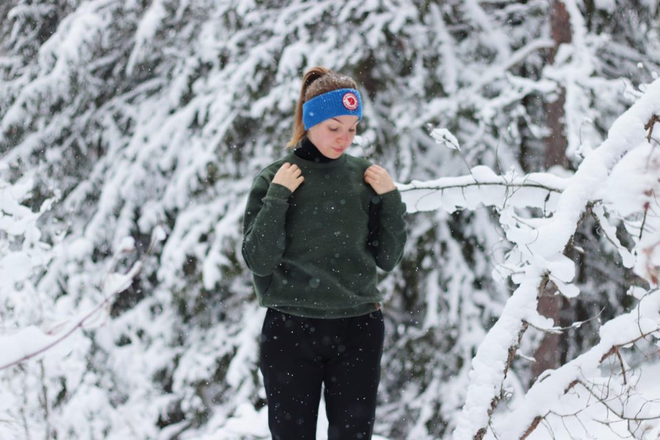 Testijakson aikana saatiin nauttia pakkasesta ja lumesta. Itse palelen aika herkästi ja ulos lähdettäessä tulee puettua aina useampi kerros. Ulkoillessa laitoin collegepaidan alle ohuen merinovillakerraston ja näin tarkeni kevytuntuvatakin kanssa kovemmillakin pakkasilla. Collegea voisi helposti käyttää myös uloimpana kerrastona leudoimmilla keleillä tai kevyemmän puuvillapolyesteritakin alla.