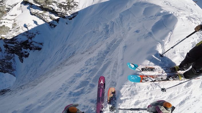 Norjan Lisen valmiina kuruun, huippua kun on niin hyvä tyttöporukka tänäkin talvena mestoilla! Norwegian Lisen ready to drop in to a couloir, so much fun to have such a good group of girls around this season too!