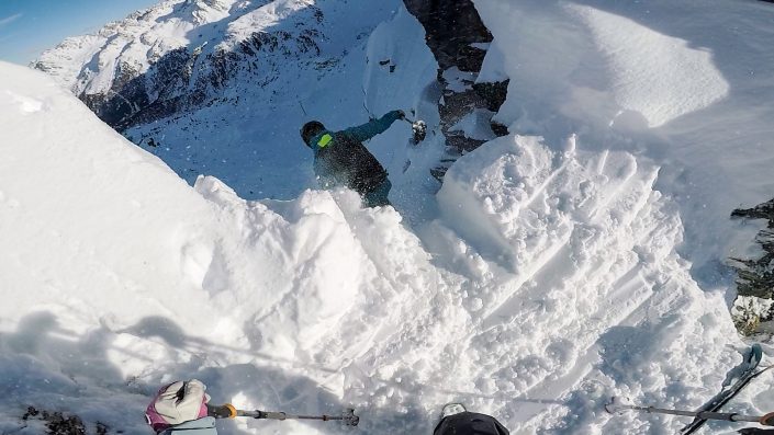 Joulun jälkeen Verbieriin, kuten melkein koko Sveitsiin, iski kova myrsky tuulineen ja sateineen. Täällä siitä selvittiin onneksi aika pienin tuhoin, mutta aika monena päivänä ovat tänä kautena olleet hissit jo kiinni kovan tuulen ja korkean vyöryvaaran vuoksi. Aikamoista arvaamatonta vuoristorataa säiden ja lämpötilojen kanssa. Keleistä huolimatta oli tammikuun toisella viikolla vuorossa perinteinen Verbier Freeride Week , eli kolme 2* arvoista FWQ- eli Freeride World Qualifier-kisaa. Siinä missä viimeisenä parina vuotena on tullut seisoskeltua palkintopallilla, ei tänä vuonna oma suorittaminen ollut ihan yhtä hyvän tasoista 😀 Ensimmäinen kisa päättyi aika alkuvaiheessa sauvan alastulossa tiputtamiseen, mikä tarkoittaa automaattisesti alhaisia pisteitä. Seuraavassa kisassa tuntui jo laskun puolivälissä ettei meinaa millään jaksaa laskea, ja missasin myös yhden dropin kun ei meinannut löytyä hyvää take offia kivien seasta, ja lopputuloksena oli 6. sija. Voimattomuuteen tulikin selvä syy seuraavana aamuna ja viimeisenä kisapäivänä, kun monoja jalkaan laittaessa alkoi masu ilmoitella vastahakoisuutta, ja siitä hetkestä seuraavat kolme päivää menikin vessanpönttöä halaillessa ja sängynpohjalla kuumeessa. Eli kokonaisuudessaan aika epäonnistunut viikko, mutta sellaista se välillä on. 😀 Onni onnettomuudessa etten ehtinyt gondoliin asti sinä aamuna………..