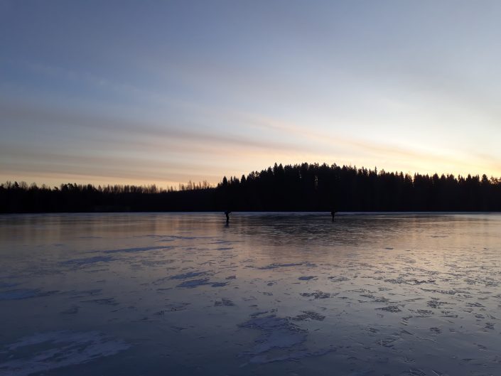 Omaan harrastuskirjooni kuuluu muitakin hieman harvinaisempia lajeja, kuten retkiluistelu ja yösuunnistus. Harrastan näitä seurassa, joten liikuntaa on tarjolla lähiluonnossa runsaasti ja säästä riippumatta. Jäät ovat olleet Tampereen seudulla hämmentävän hyvässä kunnossa tämän talven ailahtelevasta luonteesta huolimatta. Pieniä järviä on ollut jo kauan jäässä, välillä on saatu lunta päälle, mutta taas se on sulanut ja jäätynyt uudelleen luistelukuntoon. Joillekin järville on jo ehditty aurata rataakin. Retkiluistelu on kuitenkin ehdottomasti seikkailulaji eli turvallisuussäännöt pitää tuntea. Jäälle lähdetään vain kaverin kanssa ja turvavarustein: naskalit kaulassa ja heittoköysi valmiudessa, sauva jään piikkaamiseen kädessä, selässä reppu, jossa on kuivapussiin pakattuna vaihtovaatteet ja energiaa ja reppu lantiovyöllä ja haararemmillä kiinni. Lamppukin on hyvä lisä. Kun jäät ovat sopivat on niille päästävä aamutuimaan ja iltamyöhään.