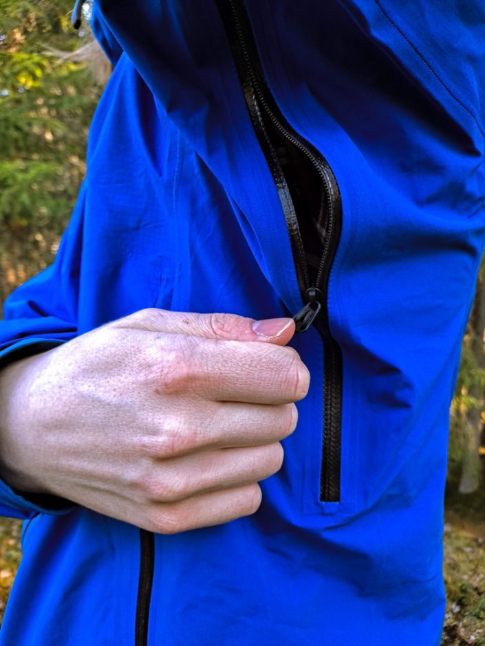 Kainaloista löytyvät pitkät tuuletusvetoketjut, jotka ovat oikea pelastus lämpimällä säällä.
