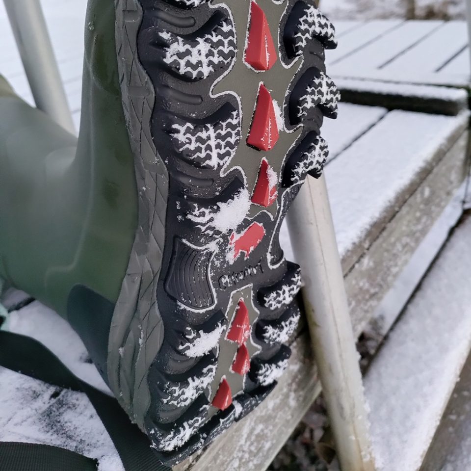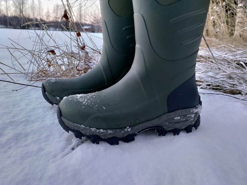 Valmistaja kehuu pohjaa myös pitäväksi, ja niin se onkin. Testasin saappaita metsässä ja kallioilla, myös tiellä mikä oli pinnaltaan kovaksi pakkautunutta lunta, eivätkä pohjat lipsuneet yhtään. Ainoastaan peilijäällä; mihin muutenkaan ei pure kuin nastakenkä; saappaat olivat liukkaat. Saappaat tuli testattua myös lumikenkien kanssa, ja toimivat tukevuutensa ansiosta hyvin siinäkin puuhassa.
