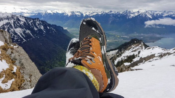 Matkustettaessa sateisesta Suomen keväästä, Sveitsin Geneve-järven rannalle saapunut kesä toivotti lämpimästi tervetulleeksi. Vaikka ympärillä toistaan kauniimmat ja korkeammat vuoret olivat selvästi lumihuippuisia, Montreux ja Sveitsin Riviera kylpivät auringossa. Kaupungin katujen lämmin asfaltti ei tuonut kuitenkaan mitään tuntua kenkiin – ja lieko oma fokus jo enemmän vuorilla kuin kengissä, mutta ensimmäinen kiitos tuli näin kenkien huomaamattomuudesta – keveydestä, niin askelluksessa kuin paksuudessaan, ja jopa hyvästä istuvuudesta tasaisella alustalla. Tällaiselle kulkijalle kuin minä, kenkien monipuolisuus eri olosuhteissa on usein vain plussaa. Sillä idealla varusteet eivät ehkä koskaan ole äärioptimoituja ja sidottuja yhteen paikkaan tai tarkoitukseen, vaan enemmänkin monipuolisia luottotuotteita käytön ja kestävyyden kannalta.