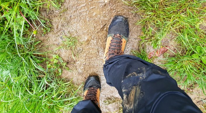 Ainoan kerran koko aikana heräsi huoli kengästä, tai paremminkin siitä tuliko sittenkin valittua itselle väärä koko, kun into juosta alas yksi jyrkempi lasku sai varpaat osumaan kenkien kärkiin. Vaan sekään ei aiheuttanut ohikiitävää ajatusta suurempaa ongelmaa, ja olikin se ensimmäinen ja viimeinen huolenhäive kengästä, usean tunnin ja vaihtelevien maastojen ja olosuhteiden aikana.
