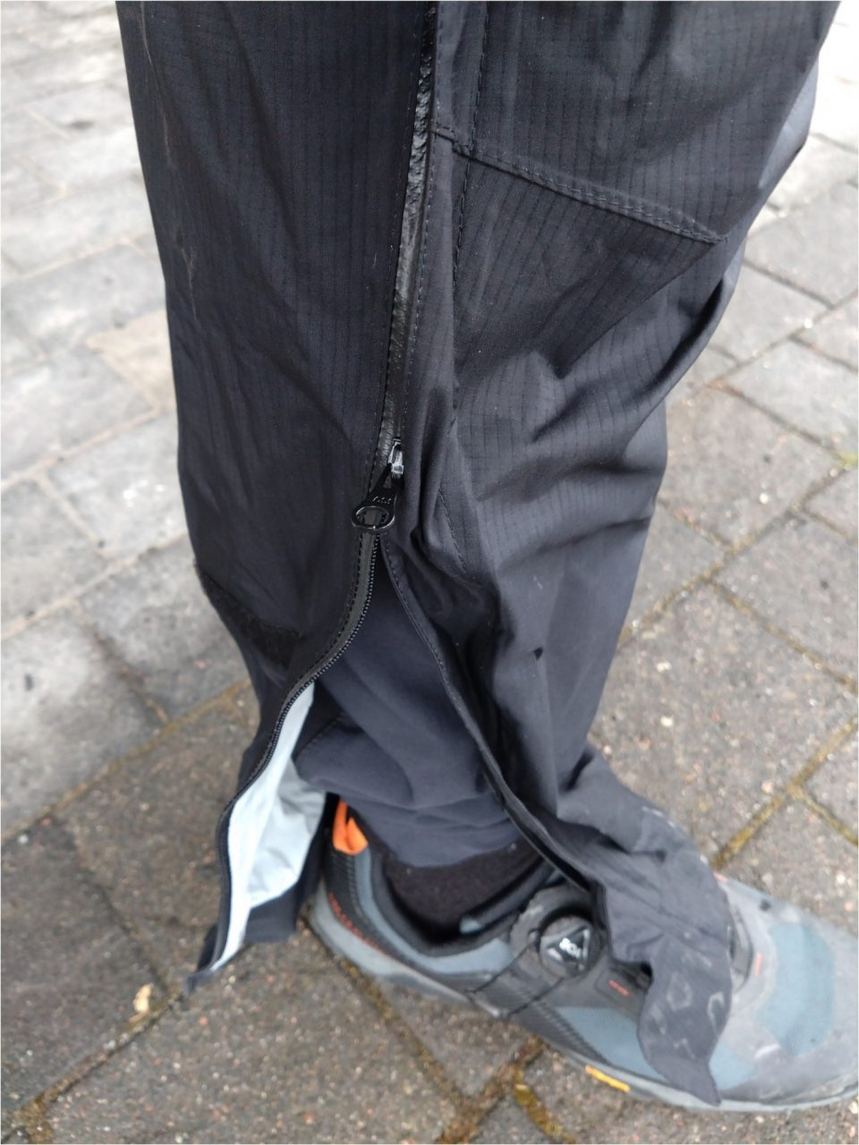 Nyt heinäkuussa päästiin sadeoloihin testaamaan housuja. Housut pitävät sateen ulkona ja ne hengittävät hyvin, sekä pienemmällä sateella vetoketjua raottamalla hengittävyys paranee vain. Housut ovat nopeat vetäistä jalkaan, koko lahkeen pituisien vetoketjujen ansiosta.
