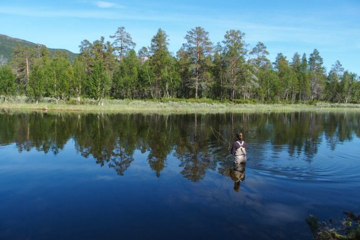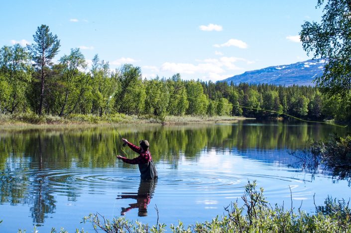 Elias perhokalastamassa Øverbygdissä. Elias flyfishing in Øverbygdt.Kuin kaksi marjaa nämä teltat! Molemmat Fjällrävenin . Like two berries these Fjällräven tents.
