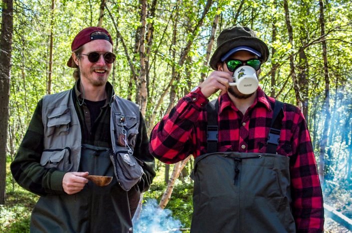 I never knew that flyfishing and learning the technique could be so addictive. Hours and hours of standing in the cold water has been good treatment for my infamed knee too haha. I’ve also got to see so many cool places that I would not have seen otherwise. But I don’t know what is motivating me the most, the fishing itself or all the otters, porpoise and lemmels that we have been lucky to meet on our fishing trips. Not to mention the hanging around the fire and eating good snacks. Such a good combination with everything!