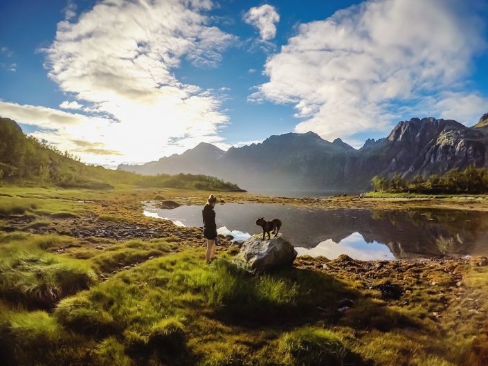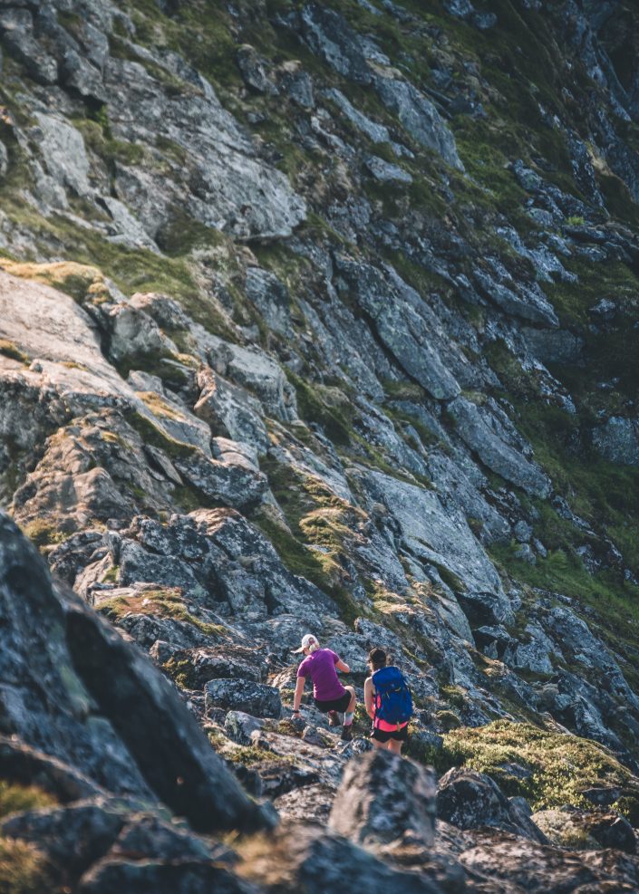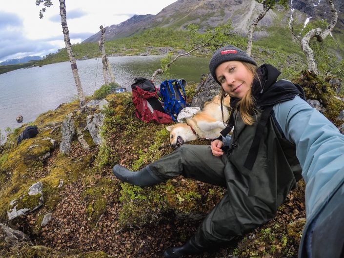 Like all the summers before, we have been mostly working this summer too. But the great thing about living in Tromsø is that you just need to get out of the door and there’s so much to do when you have free time. This summer I found two new interests: yoga and flyfishing. How can something be so fun and why haven’t I done it before?! But the reason I started to do this stuff was mostly because I was still having problems with my knee and I had to take a break from hiking and running. So suddenly I had a lot of time to do other stuff. I really miss being on the mountains but luckily I got to to do some hikes before my knee got bad again. I need to learn to slow down enough early…it would also help to get down with skis in the summer too since my knee is not so happy about the downhill parts!Anen kanssa eteenpäin. Fast forward with Ane. pic: Magnus Werner
