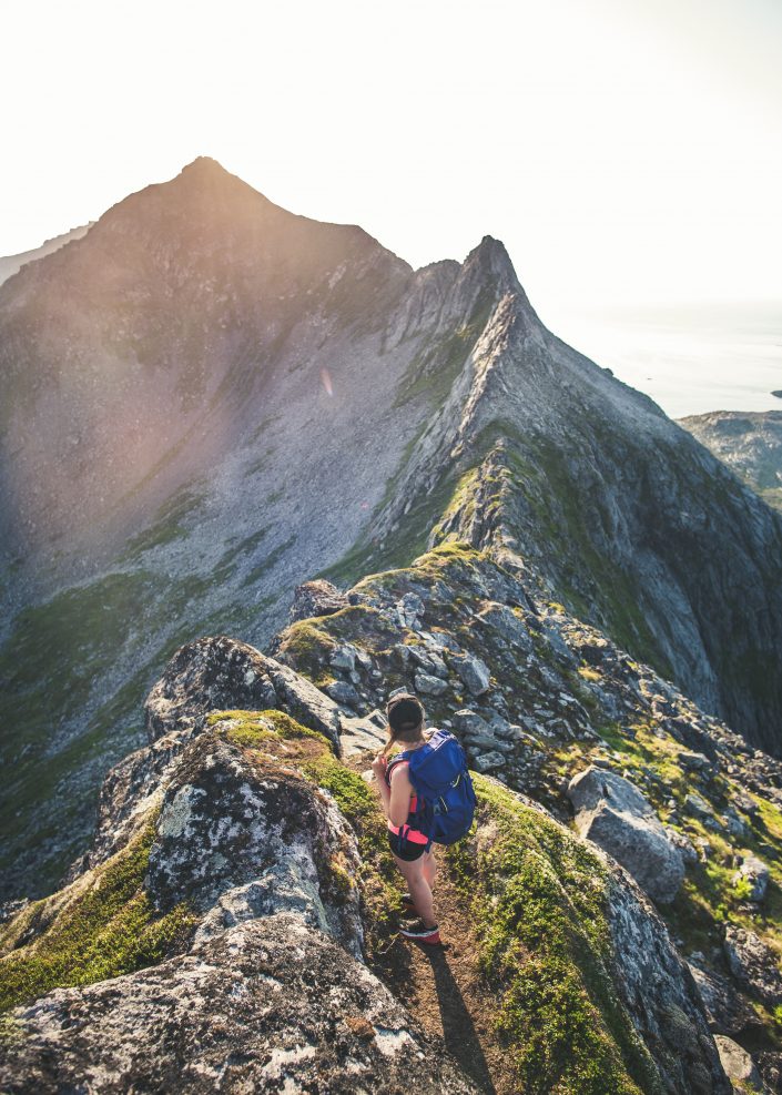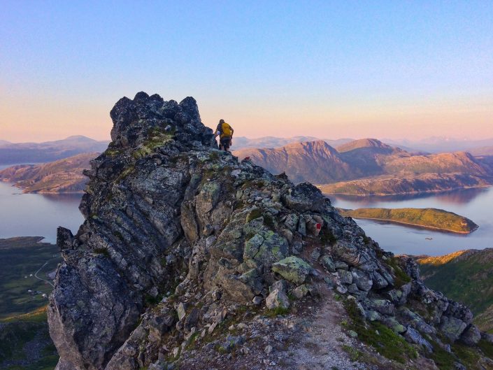Vengsøyn kapeilla harjanteilla haikkailua. Hiking on the airy ridges of Vengsøya.
