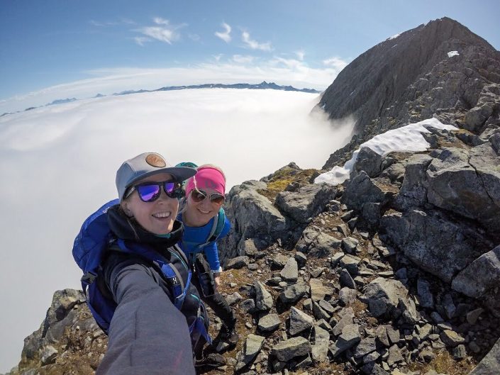 Tromsdalstindenillä pilvien paremmalla puolella. On the better side of the cloud pack on Tromsdalstinden.