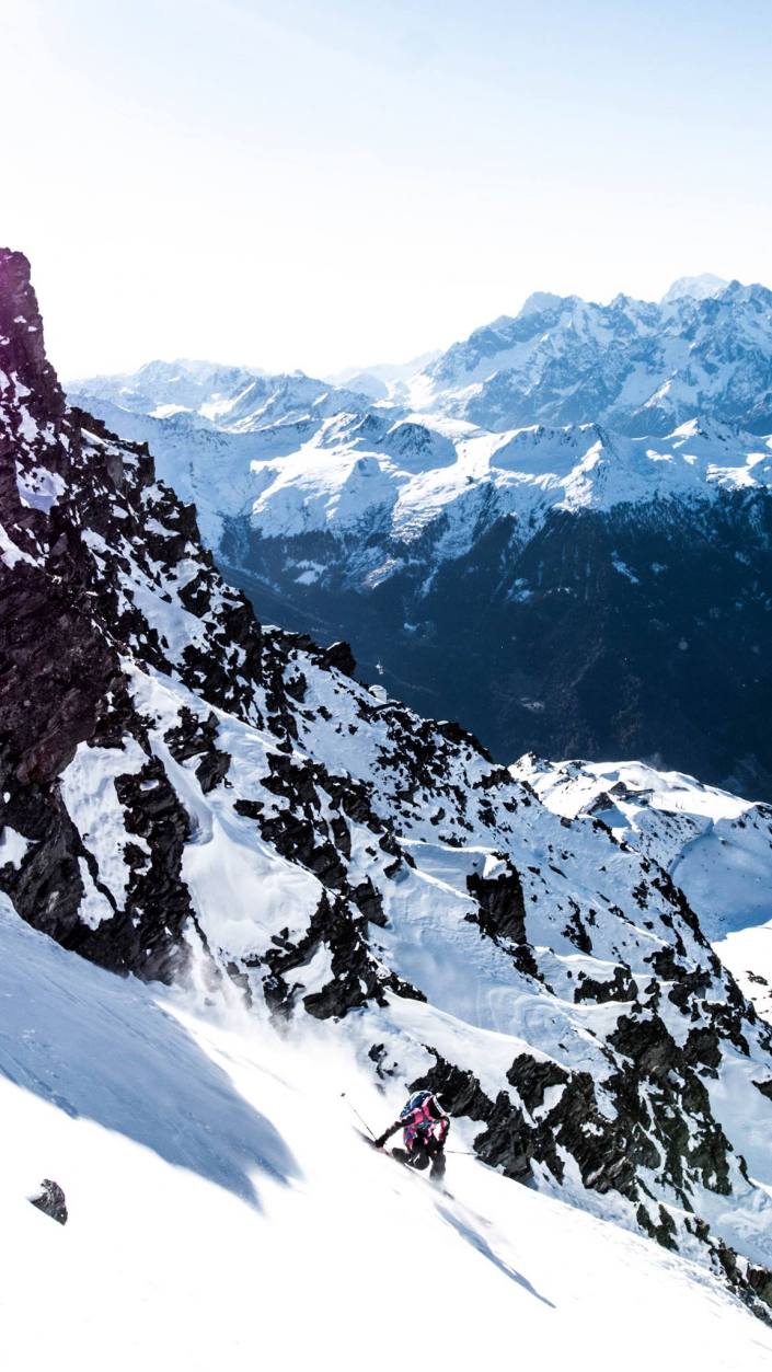 Kyykkäilyä Mt Gelén kurussa joulukuussa. Dropping knees in a couloir on Mt Gelé in Dec. Pic/Casper Arvefors