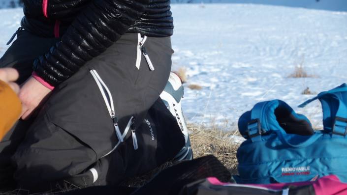 Peakin Heli Gravity W housut. Hyvin löytyy taskuja ja tuuletusaukko sivulla. Peak Performance Heli Gravity W pants. Good pockets and ventilation zipper on the side.