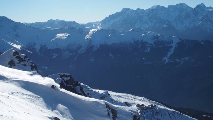 Stairway, yks helpoimmista ja suosituimmista haikeista Verbierissä. Jostain syystä sitä ei ollu viime päivinä laskettu paljon ollenkaan, joten mehän laskettiin sitten senkin edestä! Stairway, one of the most easy access runs and hikes in Verbier. For some reason it had not been really tracked at all so we got some really nice turns!