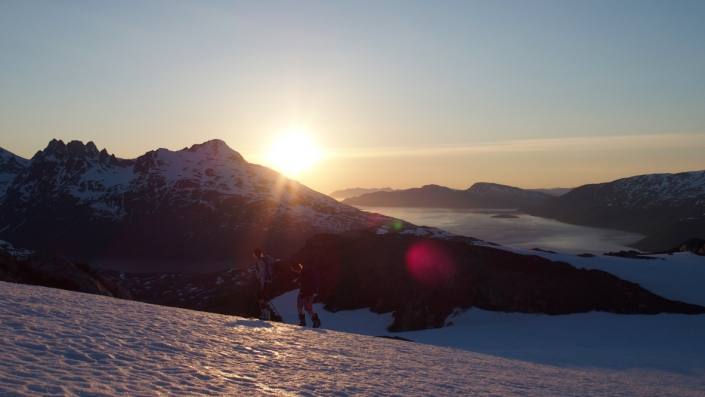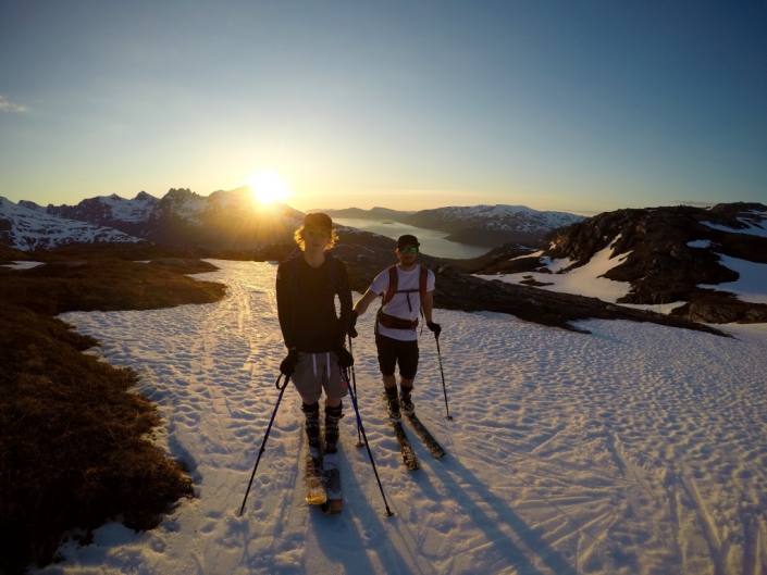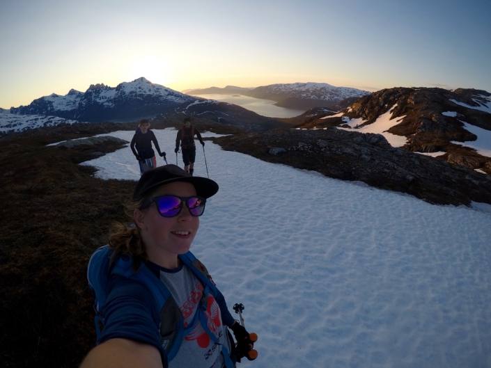 Summer ski touring and especially night ski touring under the midnight sun is such an amazing activity to do here! And you really don’t need to stress about getting back on time since it doesn’t get dark at all. The light is amazing during the night with the landscape of mountains and fjords. It’s usually also better skiing during the night when the snow freezes a bit and gets more stable as well. But it’s already July which means that the approaches are getting even longer so soon it might be time to leave the skis for a while. But we still might need to do one more summer ski tour, just for the sake that it’s July! 😀