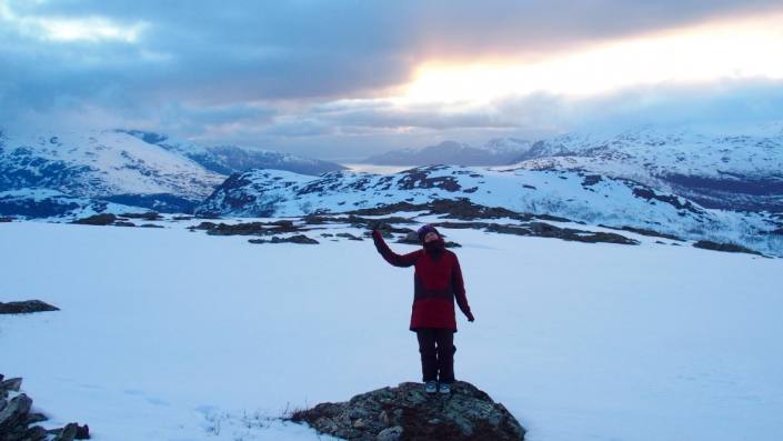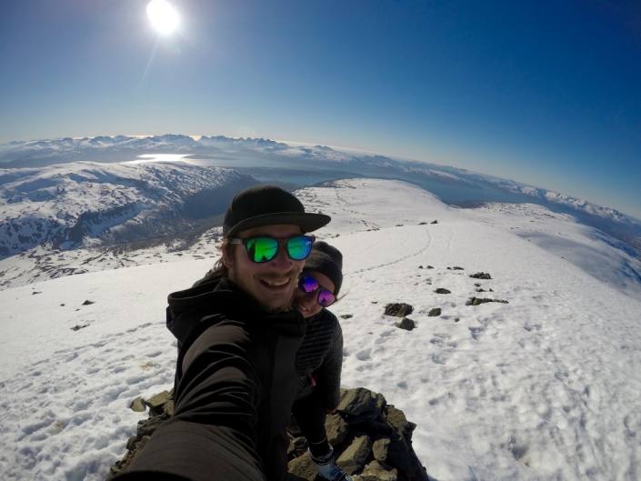 Tromsdalstindenin topissa Eliaksen kans. On the top of Tromsdalstinden with Elias. 13th of June, doesn’t really look like that! 😀
