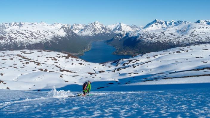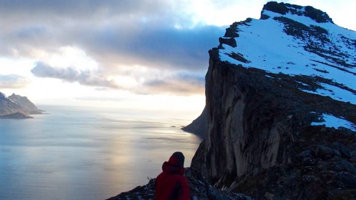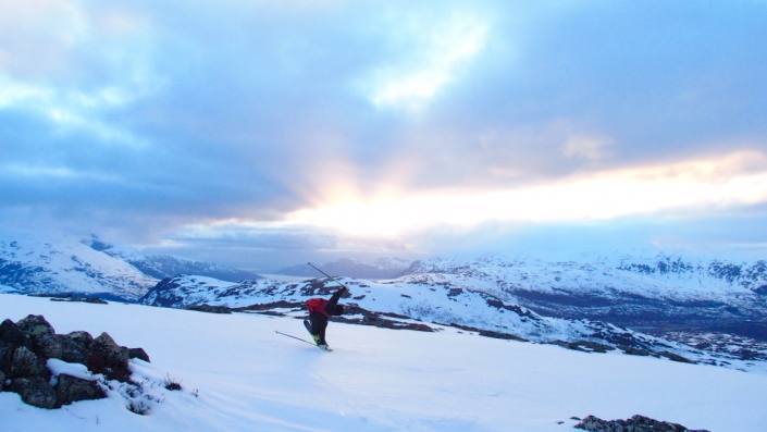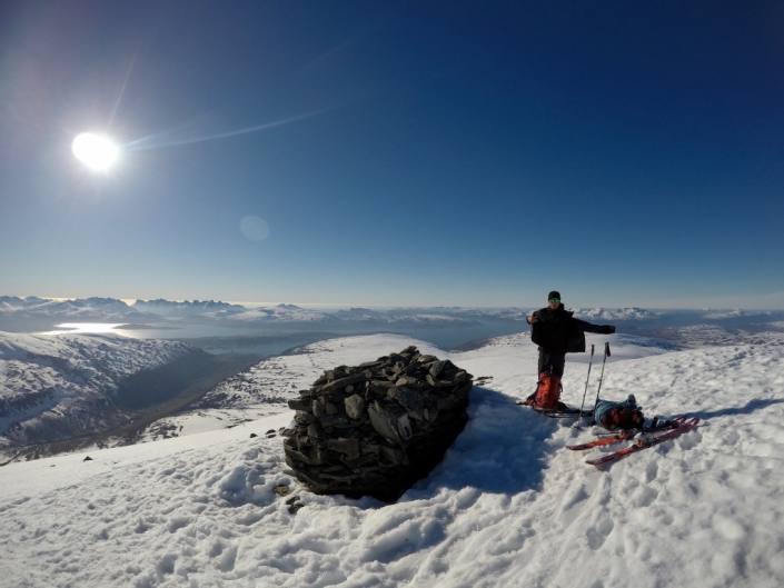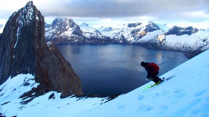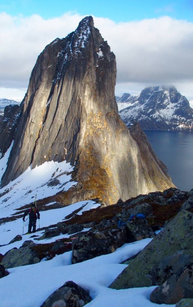 Senjan saari sijaitsee n. vajaan kolmen tunnin ajomatkan päässä Tromssasta. Hienoja huippuja löytyy monta, me käytiin tsekkaamassa upea Seglan seinämä, joka on n.650m korkea pystysuora kallioseinämä suoraan mereen. Autolla Fjordgårdeniin ja skinnaten viereisen Hestenin huipulle, tai itse Seglan päälle. Kesällä varmasti myös hieno, helppo ja näkemisen arvoinen haikki kengät jalassa!