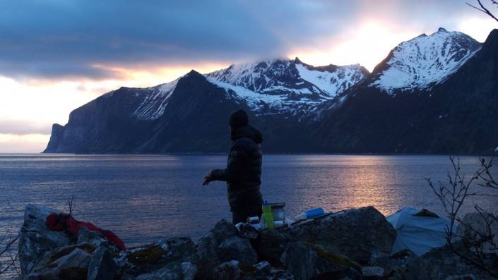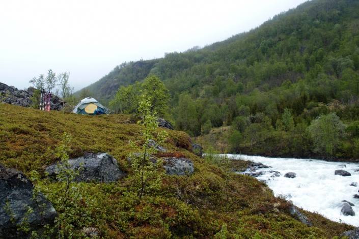 Tourin jälkeen leiri pystyyn vastarannalle. Camping on the other side of the cliffs.