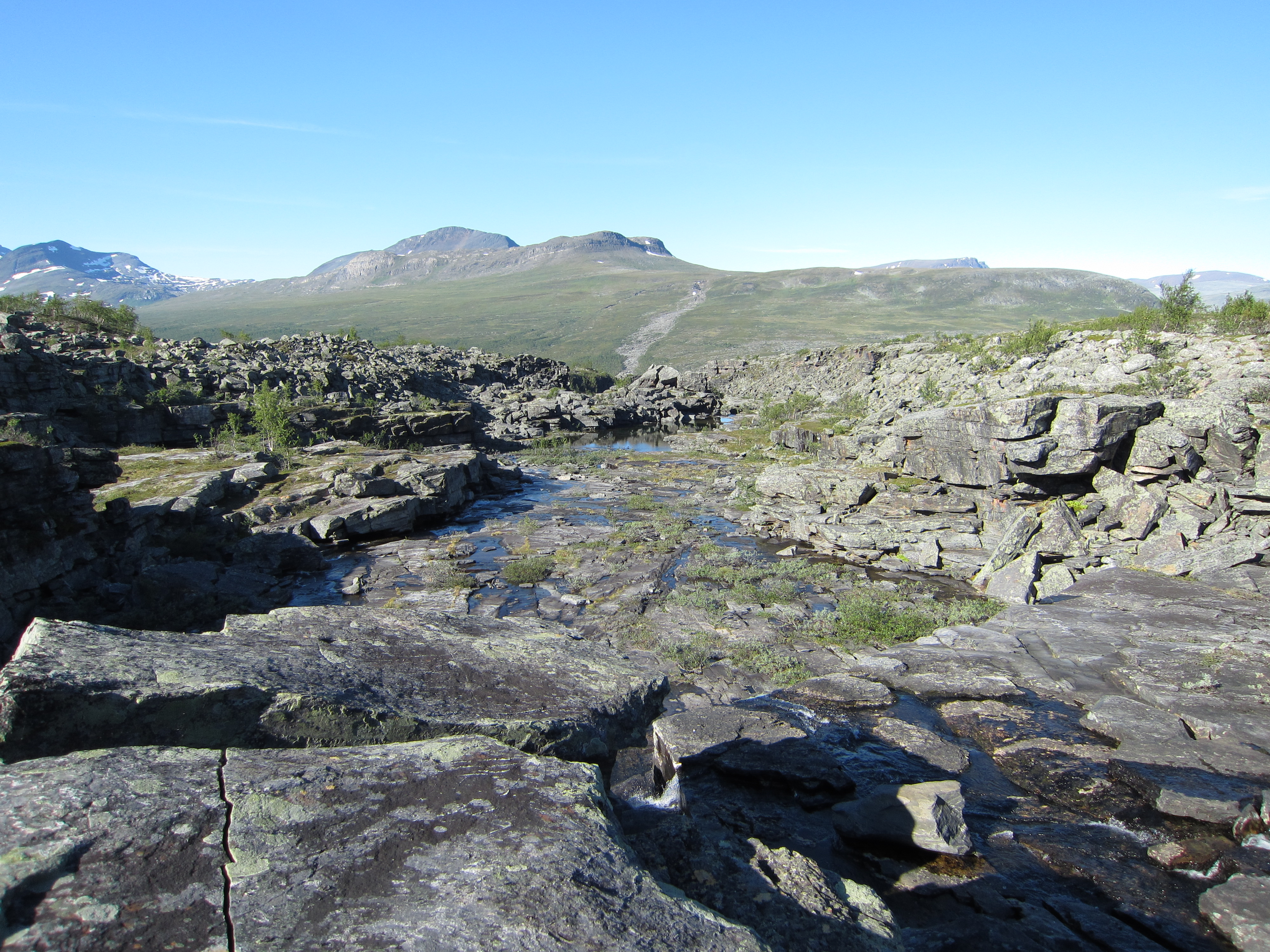 Polku vei kohti Pältsastugania, jossa olisi kuuleman mukaan hieno vesiputous. Näin suomalaisena on tottunut siihen, että vesiputoukset ovat pikkuisia liruja, jotka putoavat jonkin pienen kallion päältä, joten odotimme mielenkiinnolla mitä sieltä tulisi. Tämän päivän siitymä ei pitänyt olla niin paha. Pältsastuganille oli matkaa vain n. 10-15km, joten sehän taittuisi äkkiä. Maasto vaan teki tepposet, koska polku meni ylös alas aivan kuin vuoristoradassa. Siihen päälle vielä polttavan kuuma aurinko, tuuli lähes nollassa ja voimaton olo kuumeesta. Pakko myöntää, rankkaa oli.
