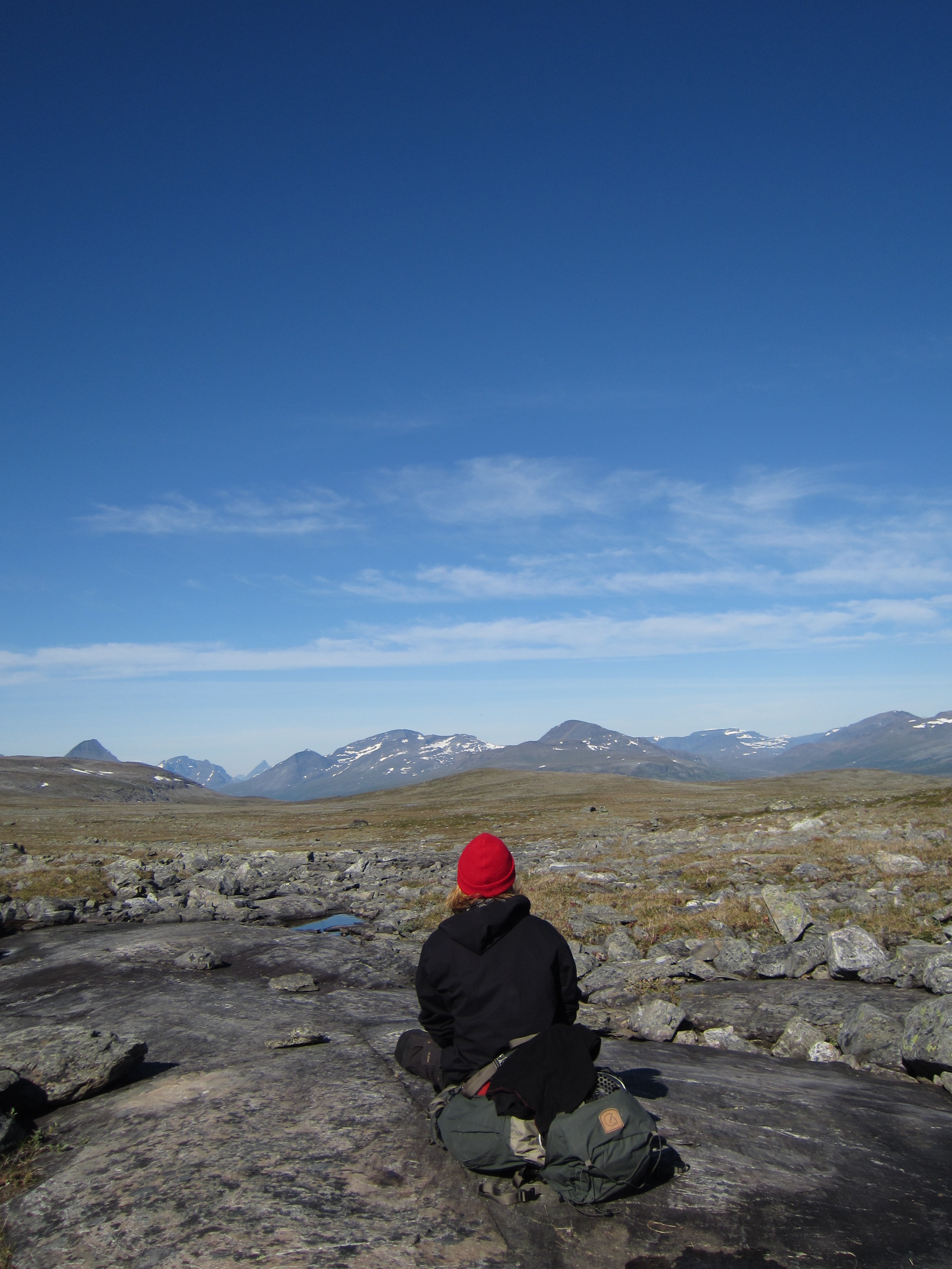 Kuumeinen olo oli tipotiessään, mutta ilkikurinen tauti oli iskenyt poskiontelot aivan tukkoon. Vielä kun jaksaisi rutistaa loppuvaelluksen niin sitten reissu olisi selvitetty. Jälleen puolimatkassa lounastimme ja olimme päättäneet ottaa perillä Malla-laivan, joka veisi meidät Kilpisjärvelle. Lounastauolla fiilis oli jo hiukan haikea, koska upeat maisemat pitäisi muutaman kilometrin jälkeen jättää taakse. Siispä ihailimme vuoristoa ja ruokimme silmiämme sen minkä kerkesimme.