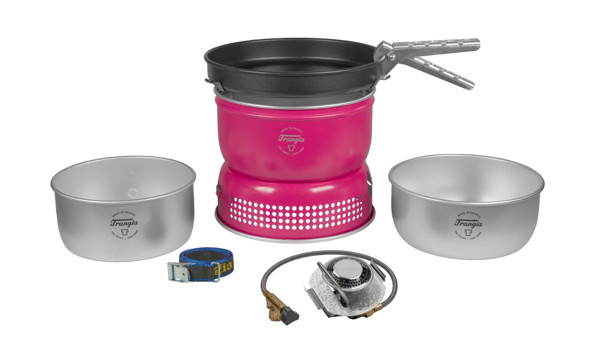 Kaasu-Trangia non-stick-paistinpannulla, nyt juhlavuoden väreissä.