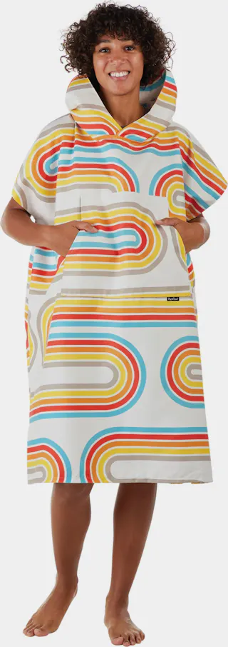 Tilava poncho rantakäyttöön: tämän suojissa voit esim. pukea ja riisua uima- tai märkäpuvun.